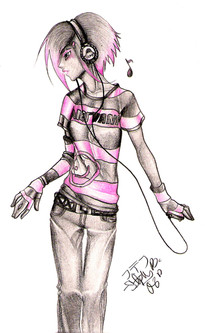Yet another thing to do with headphones! Just some random girl I doodled in my sketchbook for class, it was for illustration, and the topic was music...I drew just a bunch of people wearing headphones along with this ^_^