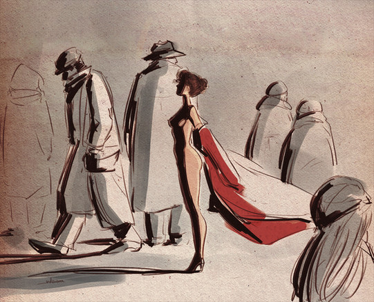 Amazing back anatomy! I love how you masterfully drew the folds on her dress as well as the design of her dress and the colour.