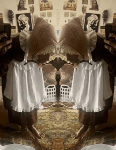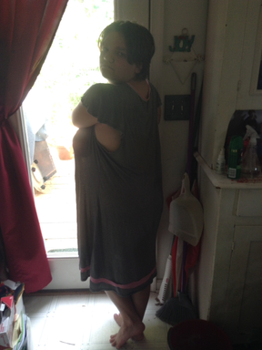 Wish to see the neckline on the piece? Though your cat's expression in the second frame is priceless.