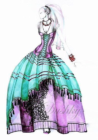I just want to draw a bustle and black belt.