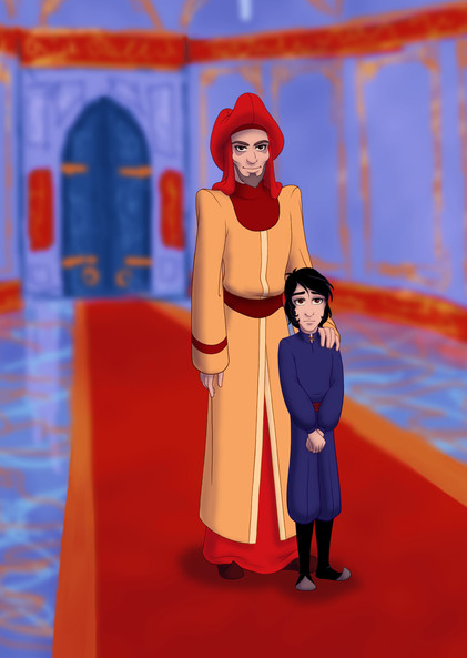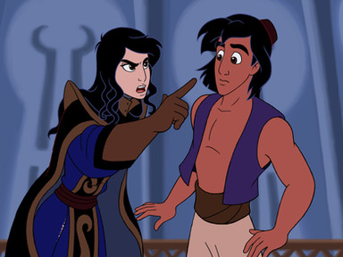 Aladdin's attack knocked off his turban, and the hair spilled out from it.Aladdin's eyes widened. "...You're a woman."