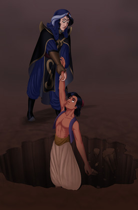 Aladdin approached, kneeling down. "It's okay. We won't hurt you," he said. "Where's Mozenrath?"
