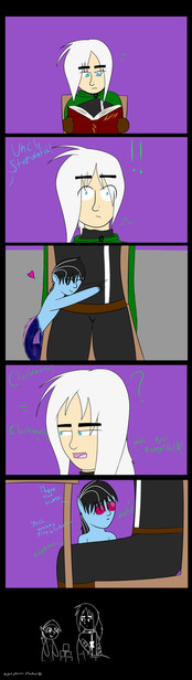 Flare (14 years old): Oh cool an Android! We have the same likes and dislikes. She looks awesome. Can androids even have genders? Was she designed to be a 13 year old girl or is she just the 13th model? Does she feel like metal? If I plug in my USB in her belly will she play music? Can I surf the web with her? ( that sounds awkward to me 0_0 ) Does she know the meaning of life? Is she an evil android? Could I annoy her with my questions? Can she make toast? I love Toast. :3 Sorry im just so curious.