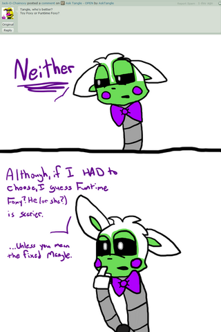 //AHEM! He did not fix Mangle. Ignore that person. Do you perhaps have a picture of you/your online persona?