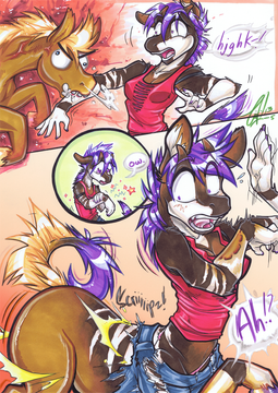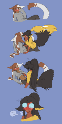 Singe: Then maybe you should take the time to get to know him, instead of shoving your muzzle in my cousin's crotch all the time! So far in one day, I've seen him smile... laugh even. You act like he's broken or defective somehow... *glaring down Mako, fluffing up defensively to look bigger*