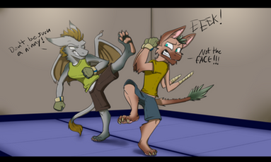 Mako: *That's it you little whore, I'm gonna stuff your feathers down your throat!! Let's so how you like THAT taste!!!" *grabs onto Singe's tail and lift him up by his rear so he can't get away, drop him on the ground and hold him down by his clawed paw*