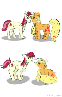When she declared "Fight me!" the snobbish unicorn took it as a request to have a duel, and accepted, looking forward to teaching these earth ponies the true power of unicorn magic... not expecting a swift slug to the face! XD