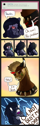 So in my tired delusional state, I made a derpy status about how to properly woo a changeling askbubblelee.deviantart.com/stβ¦They like puns. Or at least Imago does! I was talking with and she said that Mako was really punny, always making fish and sea related puns, so I couldn't resist drawing a little comic XD Is "pun-sexual" a thing?