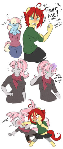 Yeah but the unicorn can take a hit tho. It doesn't take much to hurt your hand from a fight and Crayola hasn't been working everyday on a farm like AppleJack or Big Mac, so she wouldn't be as strong or enduring as those two.Β