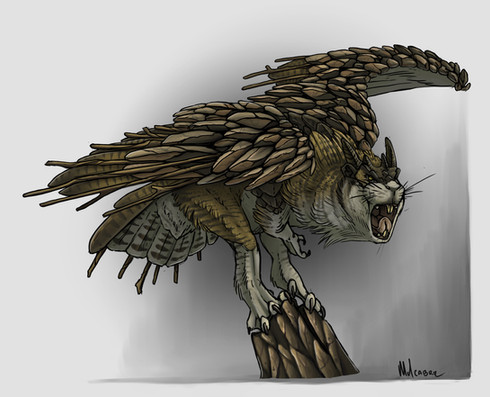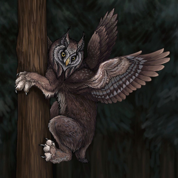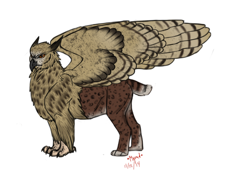 Commission work for a potoo gryphon! If you have never heard of a potoo, you will be delighted by a google search about them. I promise.Art copyright Askefise
