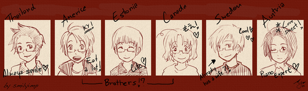 Hmm... What I think about them? Well, aside from them being my family, we're the founding members of the ASEAN along with Thailand and Singapore! Oh! We're all trying to help each other improve our countries and culture! So hmm.. about Malaysia.. he's got great Durian and then there was that Sabah dispute..eheh;; As for Indonesia... Well he's an island nation like me and he's airing one of my variety shows! (Eat Bulaga: Indonesia)Related content
