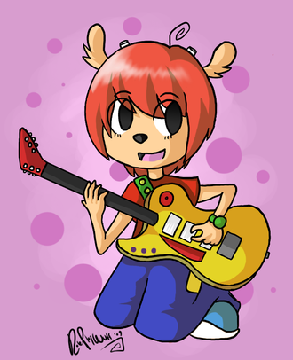 Edit: Oh noes! I screwed up on her guitar! She's plays left handed as pointed by (thanks for pointing it out btw) and Lammy please don't be mad
