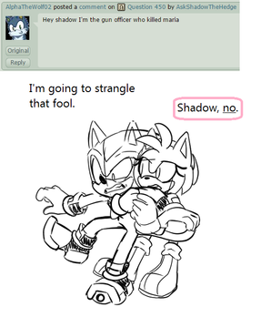 SHADOW! AMY IS SAD! WHAT DID YOU DO!? YOU GOTTA MAKE HER FEEL BETTER! >H<