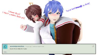 Sometimes, the twin's show up at the most unnecessary moments. (Either that, or they automatically show up whenever they sense Kaimei happening )(Seriously though, I'm getting lazy and you aren't making this easy for me, Mayu. I apologize in advance for cheating my way out of your spam)