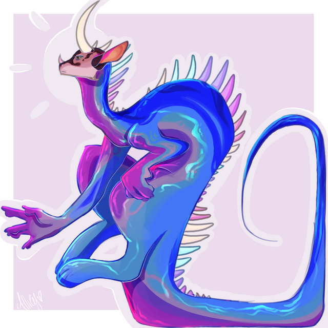 Hello hello!! Well it sure has been awhile! I apologize for not posting for such a long time, I somewhat explained it in my most recent post. thought I'd post a lil art piece to hopefully get back into the habit of posting!this is my new character/mascot, Core. I haven't created any sort of world she lives on or backstory, but she's just a lil funky. if you have any ideas feel free to drop them in the comments. My idea for her was to mash a ton of animals together, so her head is essiantly crow/crane, giraffe for the neck, lion for the mane, ferret for the flexibly/body type, lizard for her reptilian part, and gave her another pair of arms just for funzies.