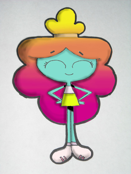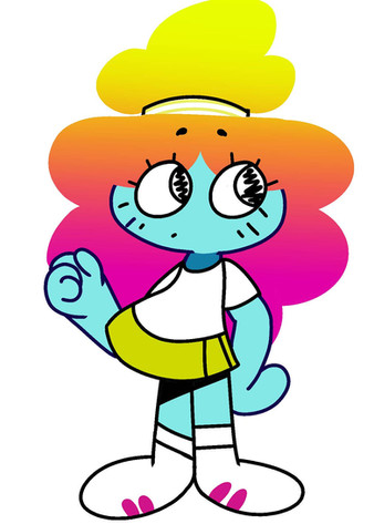 Rachel ,Tobias(the coloured cloud boy)sister from the amazing world of Gumball.She appears at the episode 7 The party if i remember wellRelated content