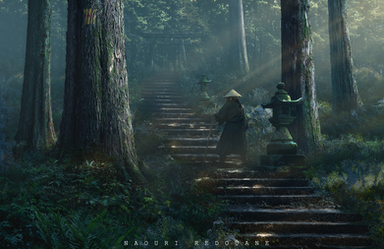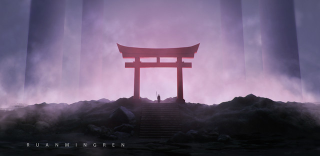 #3dlandscape #3drender #3drendering #darkness #landscape #night #shinto #tree #wallpaper