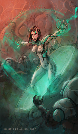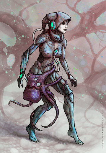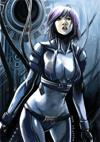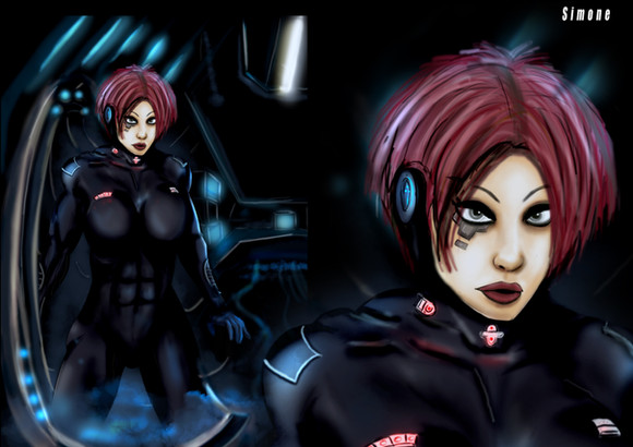Крутой сюжет. Отличный ракурс. Мне особенно расплывчатая рука нравиться. Вся атмосфера, предметы как бы обвалакивают женский образ киборга. Выражение лица, как у Джоли, пафос: убила чувака и хер с ним><