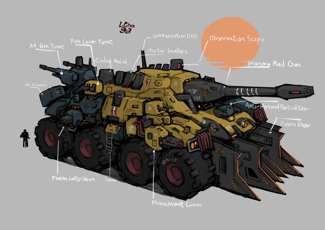 #conceptart #machinegun #protector #railgun #rocketlauncher #sciencefiction #tank