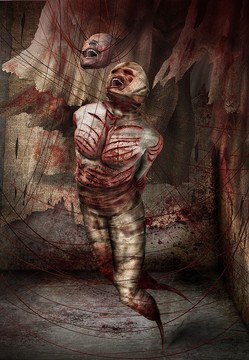 The picture also reminds a little bit me of the psycological-horror video game Sanitarium. If you haven't played it, check it up!!