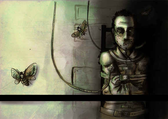 I like the idea alot. The bad boy is sitting there on his electric chair, smoking a cigarette with the connector in his hand. Really well done!
