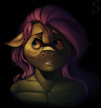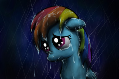 I think you did a fantastic job on the effects, the rain merging with her copious tears as the shock and regret overtake her. You captured her pain beautifully, from her expression, the feeling of stillness despite the chilly rain, the time it's taken for her mane and coat to take on so much of it. Wonderfully done. Thanks.