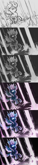 The jump from pannel 2 to 3 feels like somethings missing. I think its from flat colors to shading.