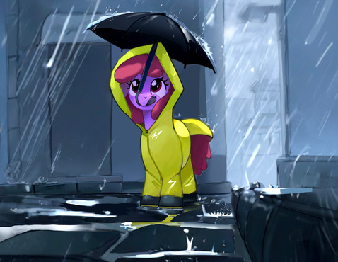 When that puddle in "Little Raincoat " isn't so little... but the pony is.