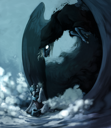 Beyound that, they are spirits. Their very form glows and flickers with raw power. Hatred flows through their shapeless forms, sending ice cold magic pulsing through their hooves and flowing out their legs. Their scream heralds the end of warmth, end of hope. It is a predator, and the emotions of the ponies are it's prey.
