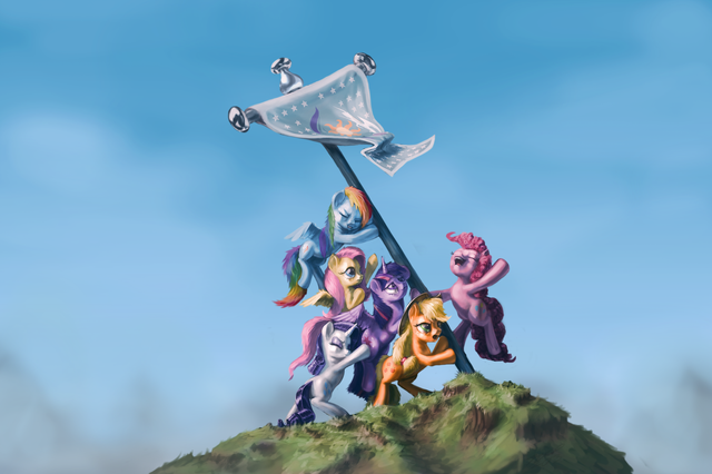 This is amazing! Rainbow's mane seems a bit tad off, but everyone else looks perfect. Their expressions are top notched and sopt on.