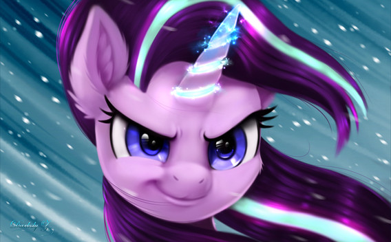 An amazing piece paying tribute to an amazing two-part episode. A perfect way to start the season, and the perfect way to commemorate it. The lighting is superb - the ghostly glow of magic combined with the light of the Cutie Mark Vault illuminates both Starlight's face, hair and eyes superbly, but reflect off the rock walls of the surrounding cave with stunning realism. The smirk on Starlight's face conveys a perfectly smug, just-evil-enough attitude, accented perfectly by the glow in her eyes - an amazing addition to a wonderful piece.