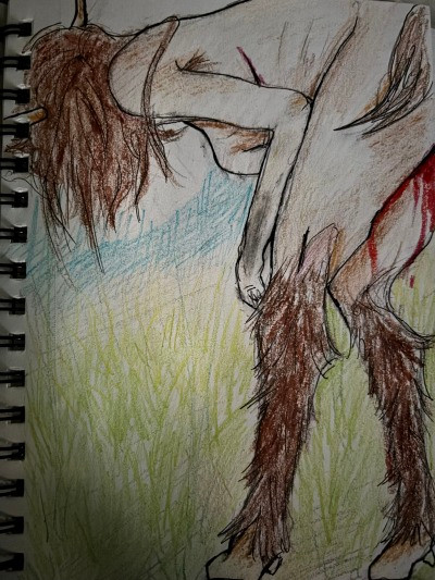 A little fun set up, removed the green foliage later on.I knnow in the Man photo I said werewolf but shes more of a beast then anything. Cause she has horns on her head and not a typical werewolf cause she's not changing.
