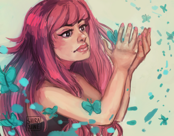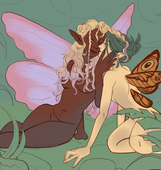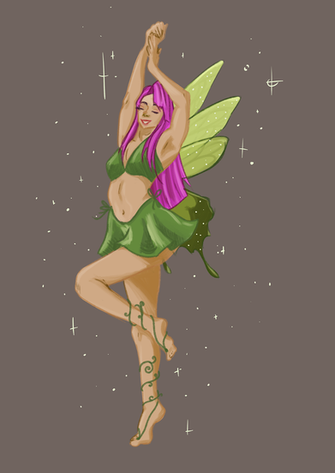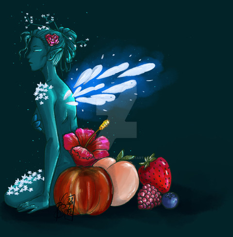 A fairy refreshing herself.This started out as just a sketch of her but then I liked it so much that I decided to color it. At first I wanted to keep the coloring simple, but when I finished, I thought it looked too empty so I added water and suddenly I was working on a background haha.Β