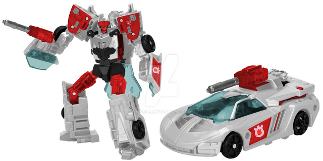 A 'repaint' I did using Instructions for TF: Cybertron Clocker/Swerve I scanned myself from the copy of the instructions that came with the toy.Cybertron version of Getaway. Lets pretend he’s a part of a “Speed Planet 3-pack” with Joyride and Slapdash. I originally was going to do a Energon Hotshot as Getaway and Energon Prowl as Slapdash, but there was no Eng deluxe for Joyride, so this idea came to me next. Pretty happy with the way this guy turned out. I know he might look a little TOO similar to Clocker for some peoples tastes. I myself, being a big advocate of making repaints look “different enough,” but I think he manages to pull it off. Unlike a few OFFICIAL Hasbro Repaints, like…say…TFU Downshift and Cyb Override GTS.