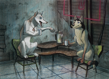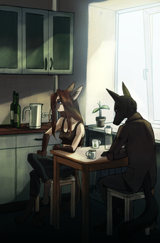 Collaboration with my friendSnap and the Red Beast have some peaceful time together. All the worries are gone this evening; there's nothing but them two and two cups of hot tasteful tea. Tomorrow they'll have to keep going on their dangerous quest. But for now, they can rest and relax.