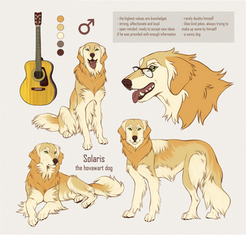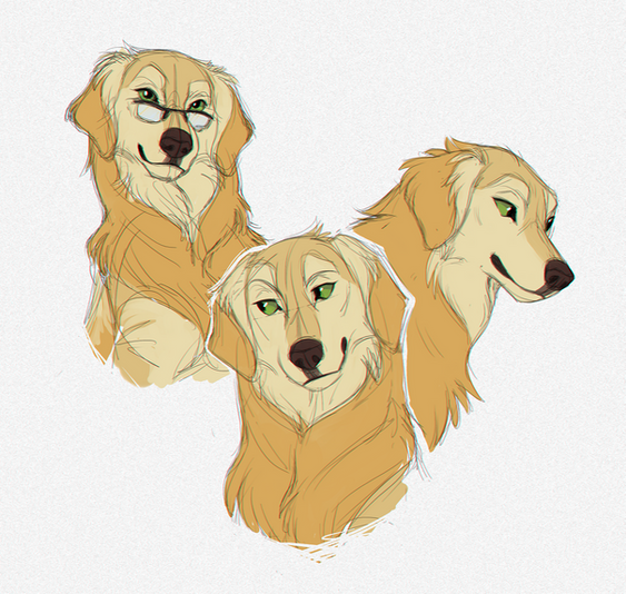 He represents a Retriever so good, as well as his look as his personality fits just perfectly. I really love those brilliant headshots you added here,which makes it even easier for the viewer to understand how this character behaves. It is nice to see how you added those markings to make him unique but still make them look natural. And ... your style in general looks just amazing owo