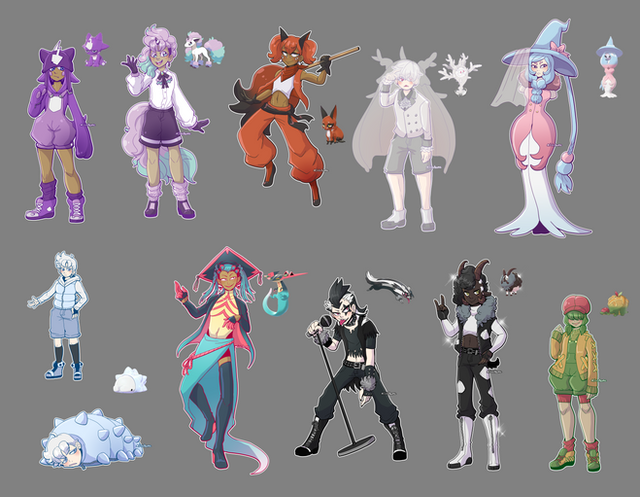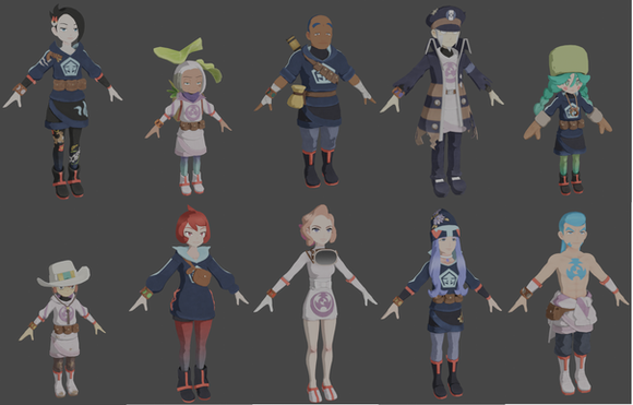 all models use a pokemon masters character as a base with the rest done by me! abzu, athena, rosetta, and hzel use misty ; mishka uses marlon ; spinch uses allister