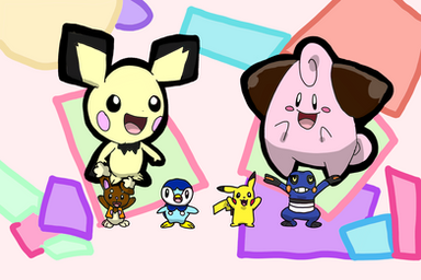 #eevee #hugging #pichu #pikachu #pokemon #wigglytuff #zoura #pancham