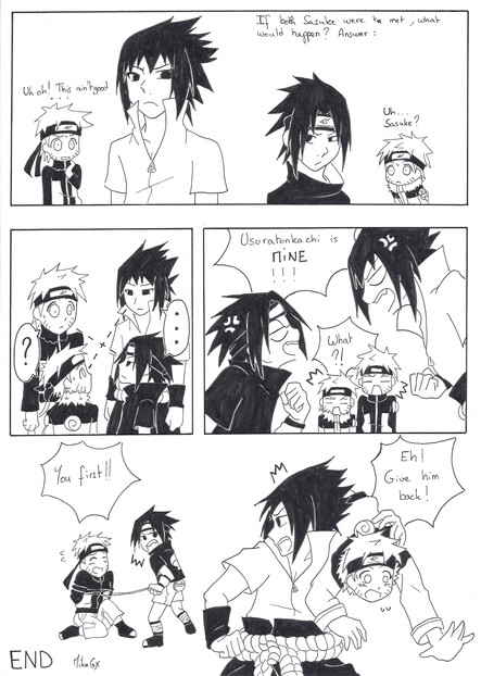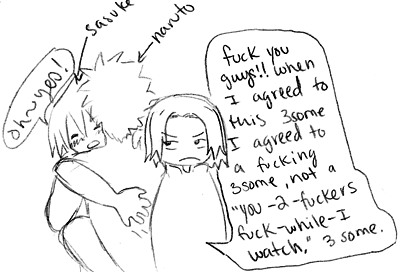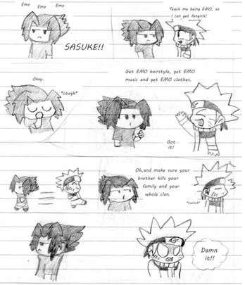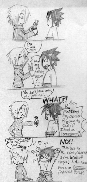 I was wondering if I was the only one who thought that Sasuke had a big forehead! (Imagine if he and Sakura really did get together...man, those would be some MUTANT children! **shot**)