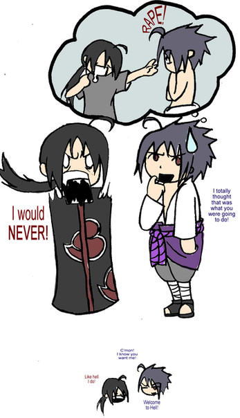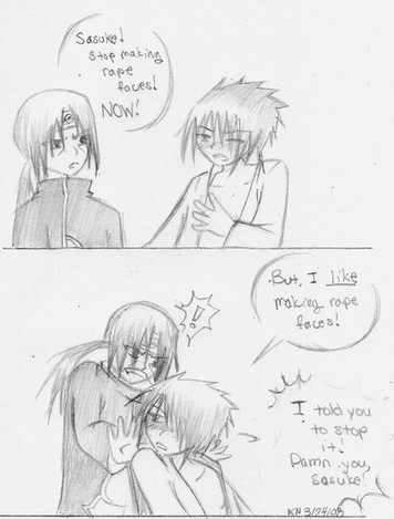 We always joke about we're the 'Uchiha Sisters,' so it was perfectly natural to think of Itachi and Sasuke doing the same stuff! ^^ I got the same reactions outta my otouto-chan and we wre screwing around just like the comic.