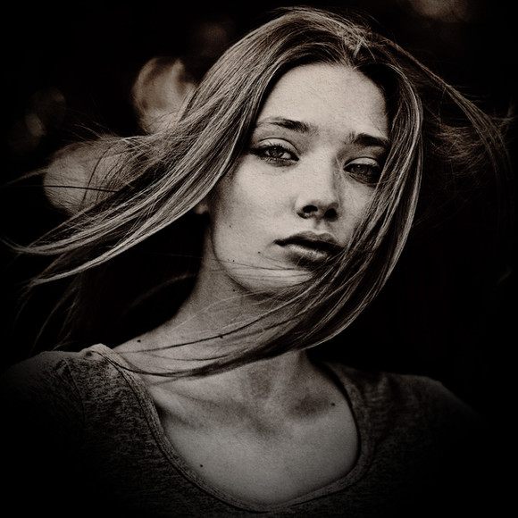 This is truly an inspiring and intense picture, very "film noir", mixed with a certain touch of an Italian "femme fatale". It's impressive how the model's skin texture looks so grainy here... you can almost feel it under your fingertips just by staring at her. and i love the shadows in it, because you have both smooth transitions on her chest and background, but also sharp shadow contrast on her face, which stresses her dramatic expression, of defiance as you've so well named it. Lovely result on the whole. Certainly one of the best images in your gallery, independently of what the DD experts might say.