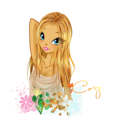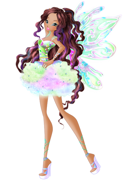 she is just like aisha(winx club)only her skin is lighter than aisha and her face is very similar to aishas,anyway i like it very much.(she is in my fav).