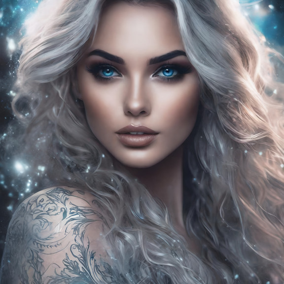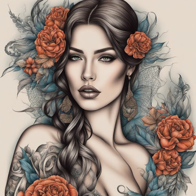 Eyes that smolder, igniting desire, Tattooed hues, a visual fire. Ember's warmth, a tender glow, In the language of ink, emotions flow.