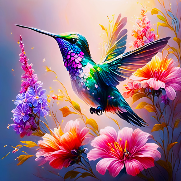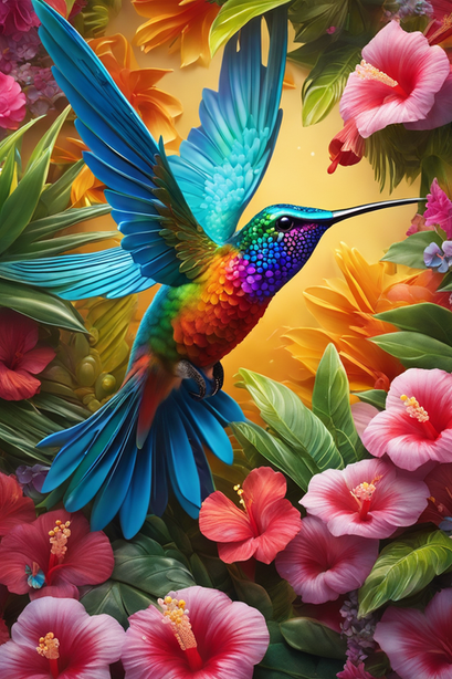 As the hummingbird hovers near a blossoming flower, imagine the delicate interaction between the tiny creature and the floral nectar. The bird's slender beak, perfectly adapted for sipping sweetness, delicately dips into the bloom, creating a moment of harmonious connection between the avian marvel and the floral beauty.