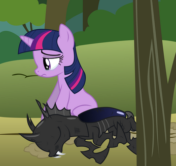 Twilight: *sigh* "I know that, Shining....but he's just a baby, all alone. What if he's got no one? And if his parents...or other Changeling come looking for him--and if we can trust them--we'll give him back. Does that work?"