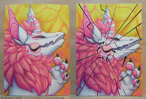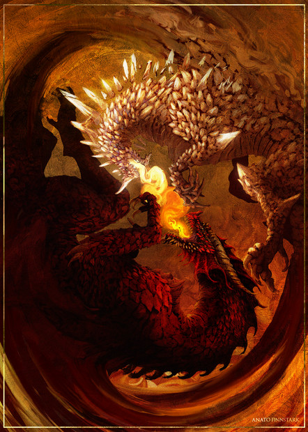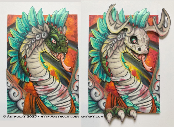 ACEO for for this months . The prompt was dragons/ mythological animals so thought it would be fun to go with the legend of the Welsh dragon. So here is the red dragon Dewi and white wyvern Gwiber, wrapped in cloth and lying dormant in Dinas Ffaraon until the day they are awoken by King Vortigern. (Story here- non-aliencreatures.fandom.com/… )Related content
