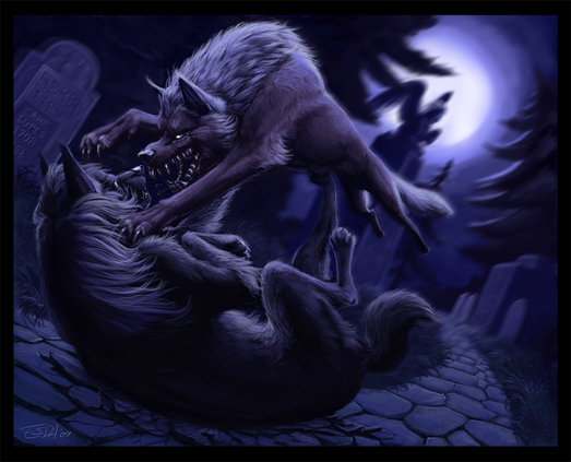 Each werewolf has such a powerful stance. The background is wonderful. The overall picture is truely beautiful.