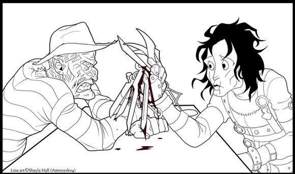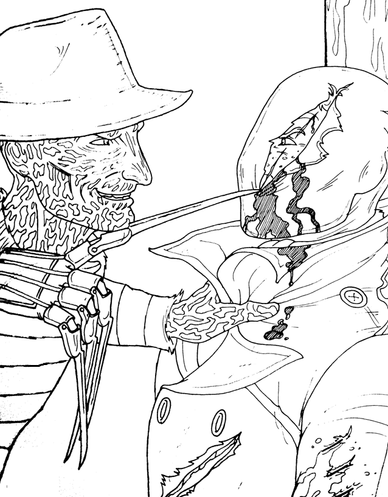round one... FIGHT!!!........Pinhead wins XD i love this crossover it works well together, but coloring this one im letting you handle it ^_^