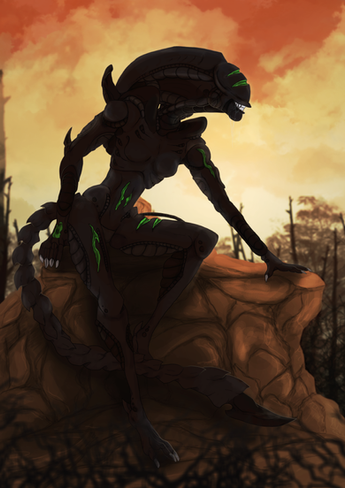 Hey it's Precious the Predalien!Boy...I am really really proud of this piece (for once). The pose was reference a little.