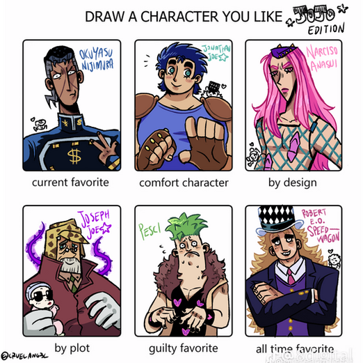 I love these two. I don’t know what it is but these two are incredibly cute and neither are annoying to me. I don’t often draw much fluffy pairings but I couldn’t resist and the lack of art of em is saddening. It makes me kinda of nervous though cause Araki has a habit of making his characters ‘Bite the Dust’ with no warning.